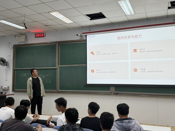 9月23日,公司自动化专业2504班于西环101教室成功举行首次班会暨班委竞选活动。本次班会由朋辈导师孙玮辰主持,班主任李志帅老师及班级全体新生共同参与。会议组织有序、气氛活跃,为新生集体的初步融合与后续建设奠定了良好基础。