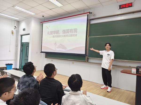 在历史纪念环节,班长牛赫园结合祖国80周年华诞暨抗战胜利80周年的背景,向同学们梳理历史脉络,号召大家铭记先辈付出,将爱国主义情怀融入日常学习与生活,让红色精神成为班级集体意识的一部分。