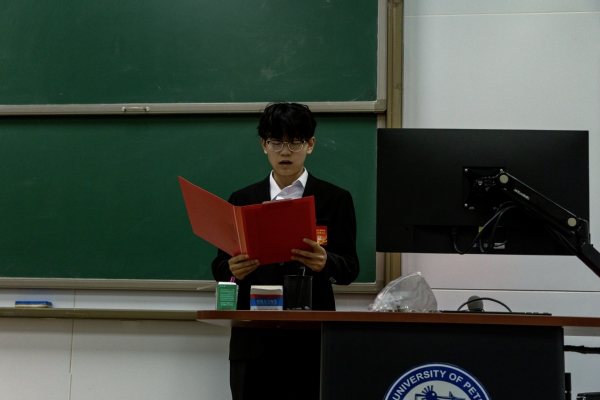 随后,学院团委书记蒋仁福受公司党委委托发表致辞。他首先对院员工会、研究生会的各项工作和成绩给予了充分肯定,并对院员工会和研究生会表示感谢。接着,他对全院青年学子提出三点要求:一是坚定理想信念,传承石大“家国同心、艰苦奋斗”的红色基因,不忘初心;二是勇于创新创造,依托学院控制学科优势,在物联网、人工智能等领域深耕钻研,追求卓越;三是矢志艰苦奋斗,主动到项目攻关前沿锤炼本领,以实干诠释青春担当。