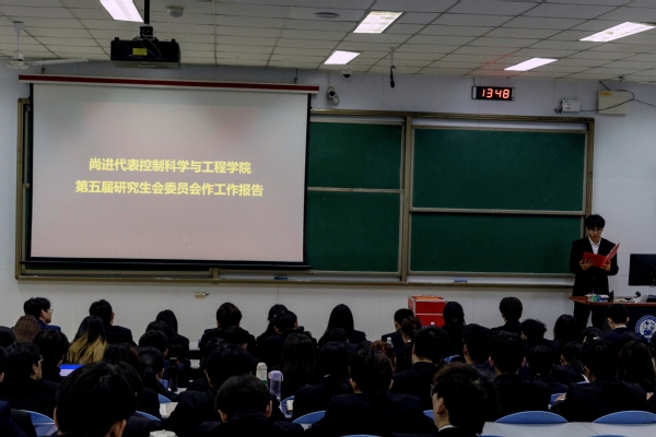 尚进同学代表学院第五届研究生会委员会作题为《勇担使命 凝心聚力 团结带领广大研究生在建设社会主义现代化国家新征程上贡献青春力量》的工作报告,立足思想引领、学术文化、权益维护、组织改革关键领域,彰显了研代会在育人与发展中的引领作用:通过分层宣讲与网络志愿行动强化思想引领,以学风建设月、学术讲坛和科创竞赛夯实学术根基,靠部门联动解决生活诉求,以考核机制与主题教育推动组织革新,团结广大研究生在强国征程中贡献青春力量。