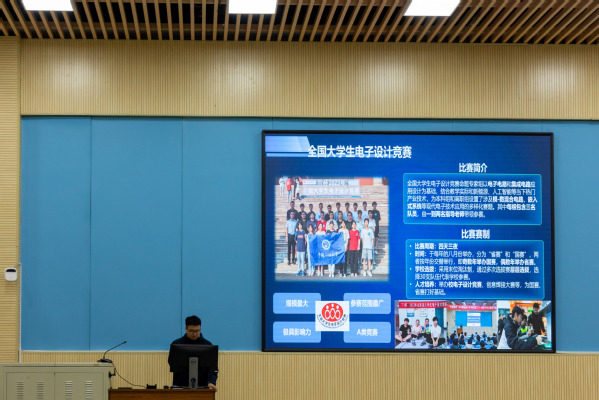 在经验分享环节,全国老员工电子设计竞赛获奖者班长朝同学以《潜心向学,厚积薄发》为题,结合自身参赛成长经历展开分享。他从团队高效分工、核心器件选型、系统方案设计等备赛关键环节切入,结合视觉识别系统搭建、控制算法迭代、硬件电路调试等实际技术案例,深入拆解了技术实践中的重点难点问题,并毫无保留地分享了变结构PID控制等算法的应用心得与优化技巧,为在场参赛同学提供了极具价值的实战参考。