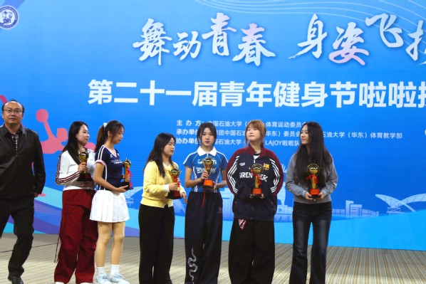 在团体赛环节,学院参赛队员身着统一蓝白队服,以作品《Beyonc é》开启活力表演:整齐划一的动作、富有张力的队形变换,将青春的热情与团队的默契展现得淋漓尽致,最终凭借稳定发挥荣获团体赛二等奖。