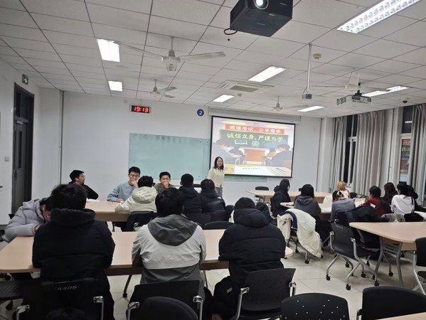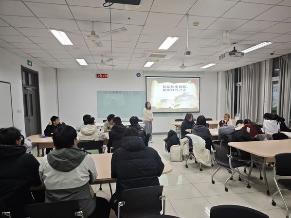 期末备考在即,为筑牢历史认知根基、强化诚信应考意识,智感2502班在综合楼A402教室开展“铭记历史创伤,砥砺复兴之志;诚信立身,严谨为学”主题班会,全班同学共同参与。