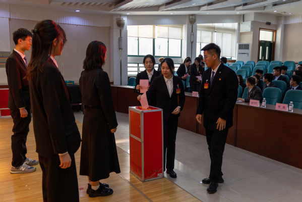 大会期间,主席团先后召开第二次、第三次会议,听取审议情况和选举计票结果汇报,确定正式候选人名单,研究修改并原则通过《关于学院团委工作报告的决议》。全体代表以无记名投票方式进行等额选举,产生学院第一届团委委员7名、出席校第十七次代表大会代表14名。随后,大会公布选举结果,宣布当选名单,全体代表表决通过《关于学院团委工作报告的决议》,并向全院团员青年发出坚定理想信念、锤炼过硬本领、勇于担当作为的倡议。伴随着雄壮的《国际歌》,学院第一次团代表大会圆满完成各项既定议程,胜利闭幕。