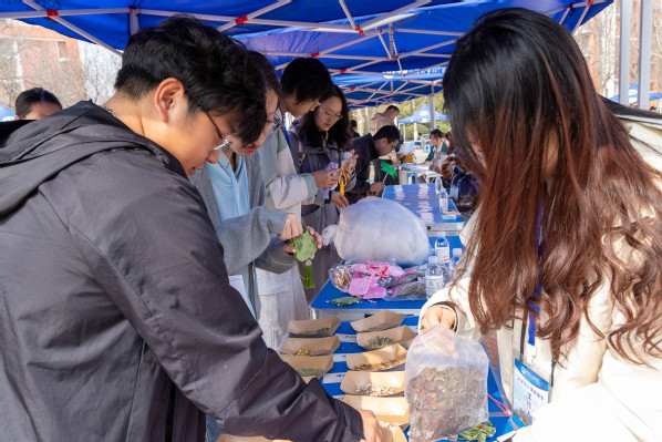 活动现场精心打造了多重体验场景,让同学们在春日里沉浸式感受节气之美与心理疗愈的力量。在谷雨文化小站,图文展板生动讲述了“萍始生、鸣鸠拂其羽、戴胜降于桑”的谷雨三候典故,同学们驻足品读,在传统农耕智慧中感知生命萌发、勤勉耕耘的美好寓意,完成了一场与自然时序的温柔对话。